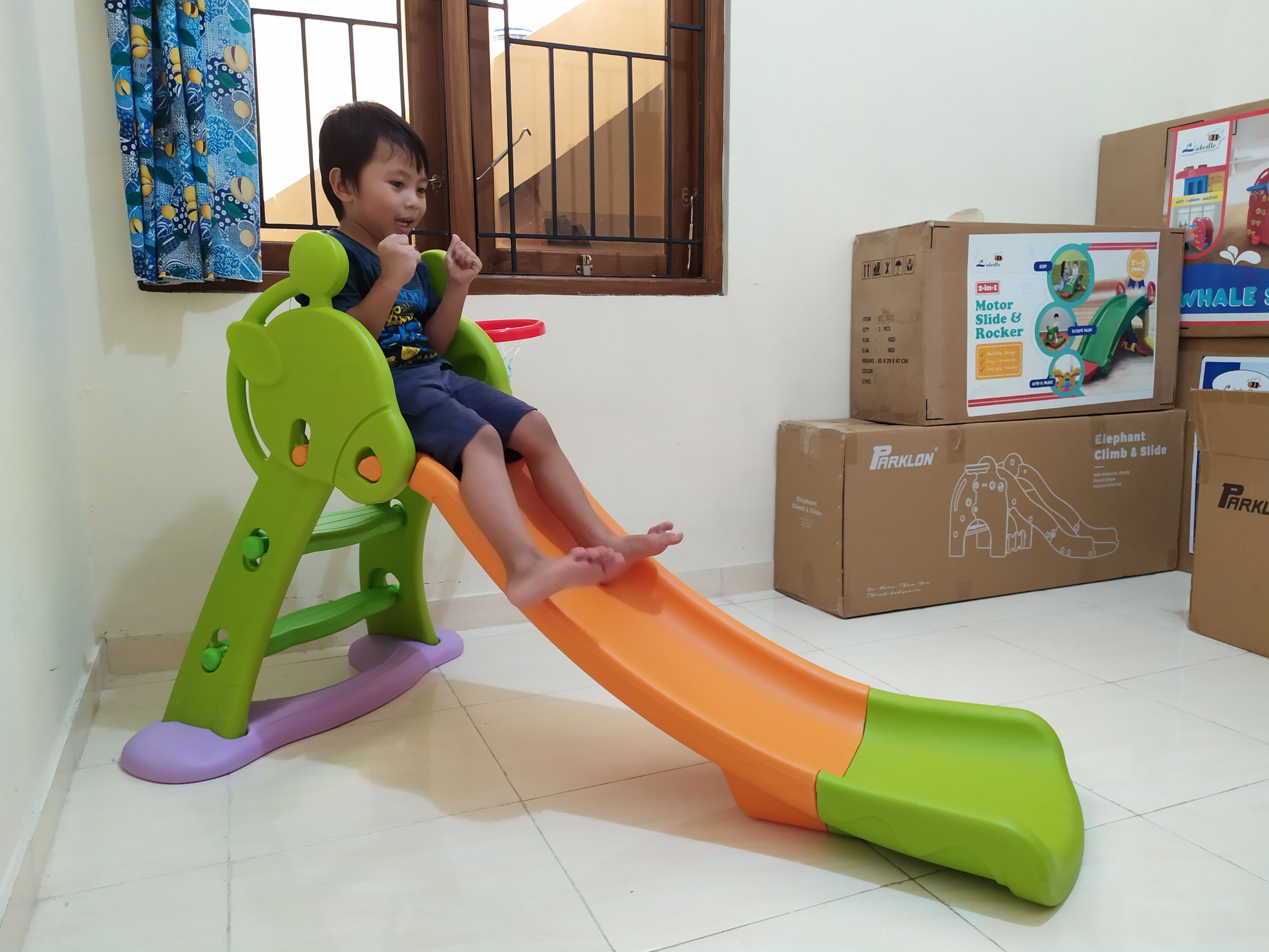Parklon Folding Slide perosotan lucu dengan ring basket. Material dari plastik aman bebas racun. Perosotan tidak terlalu tinggi juga tidak terlalu pendek cocok untuk anak-anak kecil. Parklon Slide dapat digunakan diluar ataupun didalam ruangan. Dapat dilipat jika tidak digunakan.