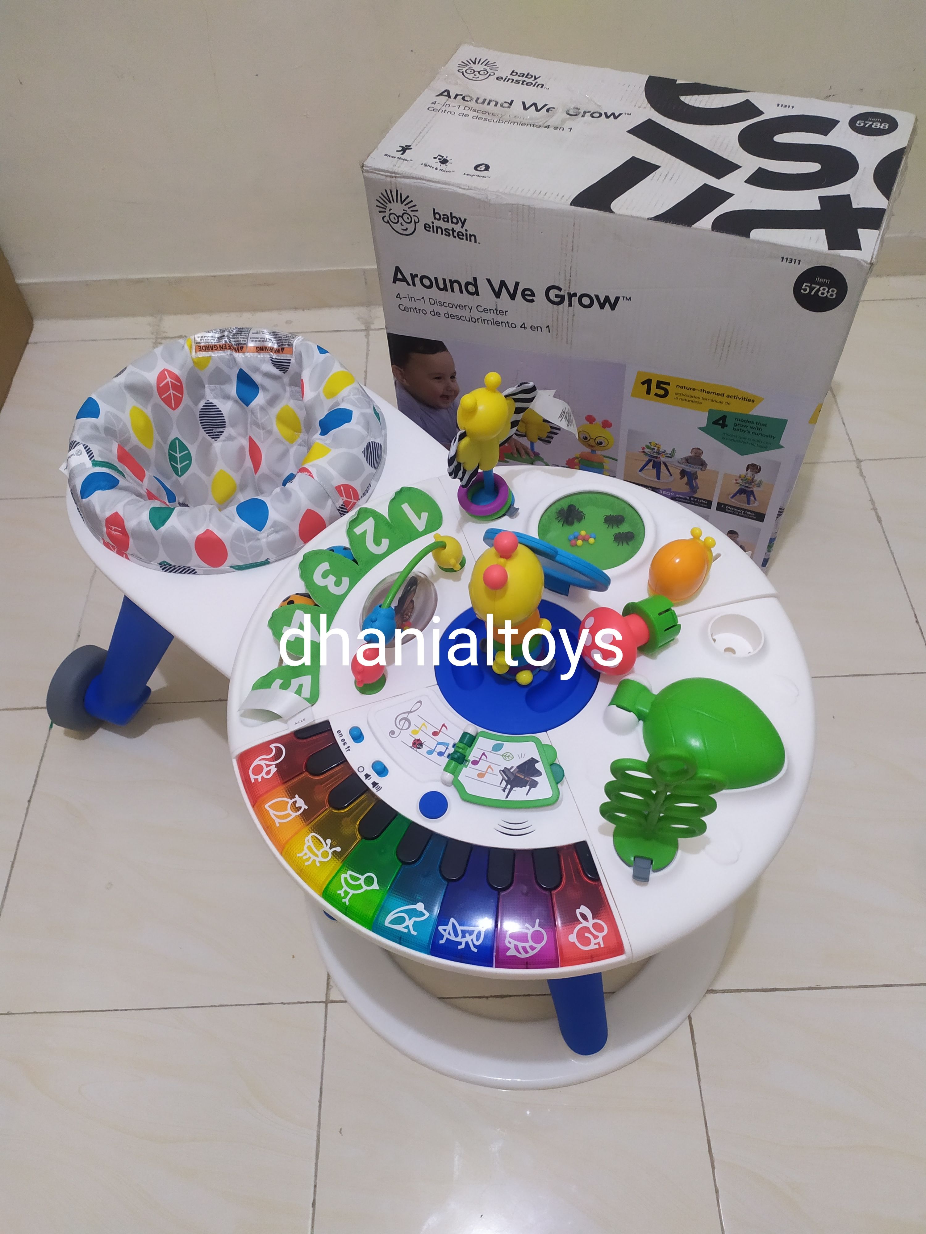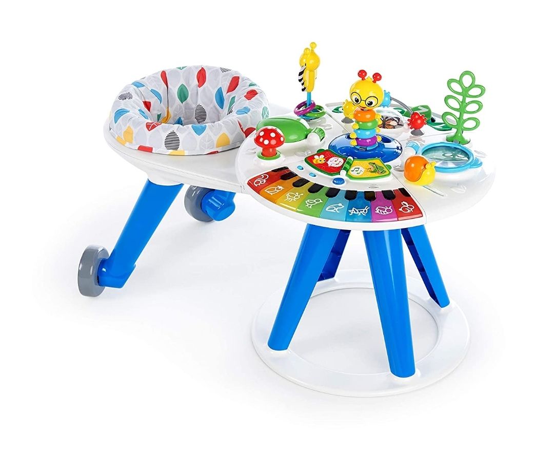 STOK 6 Baby Einstein Around We Grow 4-in-1 menyediakan kombinasi latihan fisik dan sensorik anak yang mempromosikan gerakan dan keterampilan kognitif. Latihan berjalan mengelilingi meja activity. Semua kebaikan itu akan memikat si kecil. Cocok untuk anak sejak usia 6 bulan ke atas. Kegiatan duduk, berdiri, hingga berjalan, ada mode untuk setiap tahap. Meja penemuan walk-around yang inovatif menghadirkan manfaat baby walker dan stasioner menghibur anak secara bersamaan dalam satu solusi. Kursi empuk berjalan 360 ° di sekitar meja aktivitas, mendukung langkah pertama bayi dan memberdayakannya untuk bergerak dan menjelajah dengan kecepatannya sendiri dengan aman. 15 mainan bertema alam melatih sensorik pada jari bayi dan mendorong pengembangan keterampilan motorik. Temukan suara dan bahasa baru dengan piano full-oktaf yang memperkenalkan musik, binatang, dan warna dalam bahasa Inggris, Spanyol, dan Prancis. Stasiun mainan yang dapat dilepas sangat bagus untuk permainan lantai dan dapat dimainkan beberapa anak terlibat sekaligus. Anak kecil akan suka menggambar, melukis, membangun, dan menciptakan di meja seni. Fitur: Kursi yang dapat diatur ketinggiannya berjalan 360 ° mengelilingi meja, mendukung langkah pertama bayi Memberikan kombinasi pengalaman fisik dan sensorik yang mempromosikan gerakan dan keterampilan kognitif Mendorong penemuan pendengaran, visual, dan sentuhan melalui 15 mainan dan pengalaman bertema alam