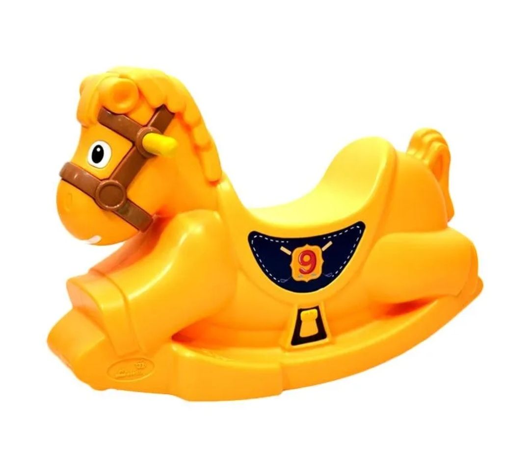 Adalah mainan kuda goyang yang disukai anak-anak, dengan kecepatan tetap dan aman menemani perjalanan imajinasi si kecil.