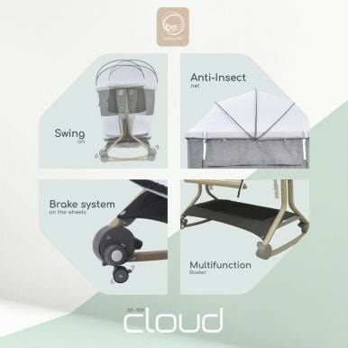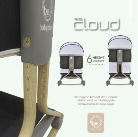Bedside baby crib yang memiliki fitur ayun, Babyelle Cloud dengan 2 pengaturan posisi bed yaitu ranjang gantung (bassinet) dan bisa diturunkan kebawah menjadi baby box, 6 pengaturan ketinggian dapat disesuaikan dengan tinggi tempat tidur dewasa agar bayi dapat selalu dapat berdekatan dengan orangtua. Sisi samping dapat dibuka untuk memudahkan mengeluarkan bayi dari crib, akan sangat membantu terutama bagi ibu yang baru selesai melahirkan.