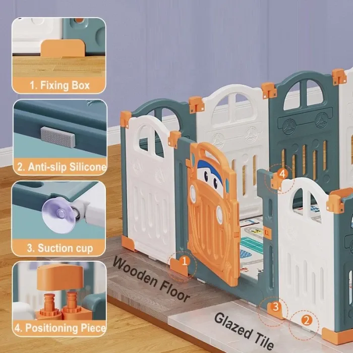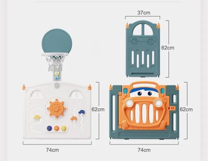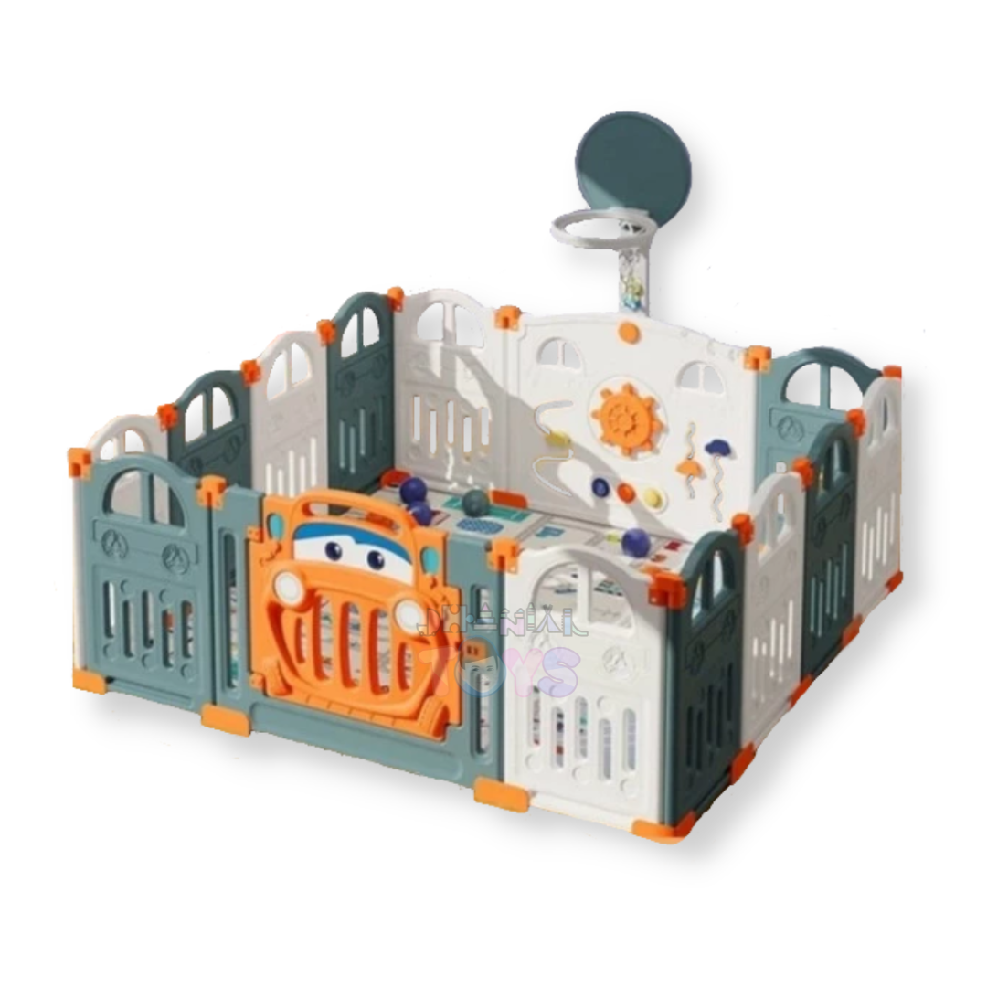 Mau ditinggal sebentar takut berbahaya. Solusinya tentu saja pagar pengaman (playpen). Pagar pengaman ini mudah dirakit dan dilipat, sesuai kebutuhan. Dengan adanya pagarpengaman, sikecil tidak akan keluar dari pagar tersebut. Kita tinggal meletakkan mainan kesukaannya dan tidak perlu khawatir si kecil akan lari kesana-sini. Fitur & Spesifikasi: - Desain yang lucu dengan motif mobil. - Sudah termasuk ring basket - Tidak ada sudut tajam - Material tidak berbahaya - Mudah dirakit dan dilipat - Anti slip - Kokoh dan stabil Dimensi produk (setelah dipasang): 148 x 148 x 62 cm (pxlxt) Dimensi paket: 75 x 32 x 67 cm
