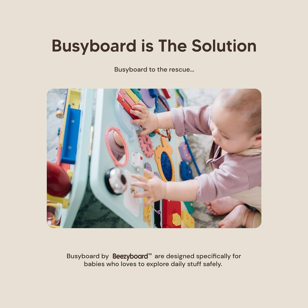 Dan busyboard adalah jawaban terbaik dan teraman dimana anak bisa bebas bereksplorasi tanpa parentz perlu khawatir mereka kesetrum, merusak, terluka dll.