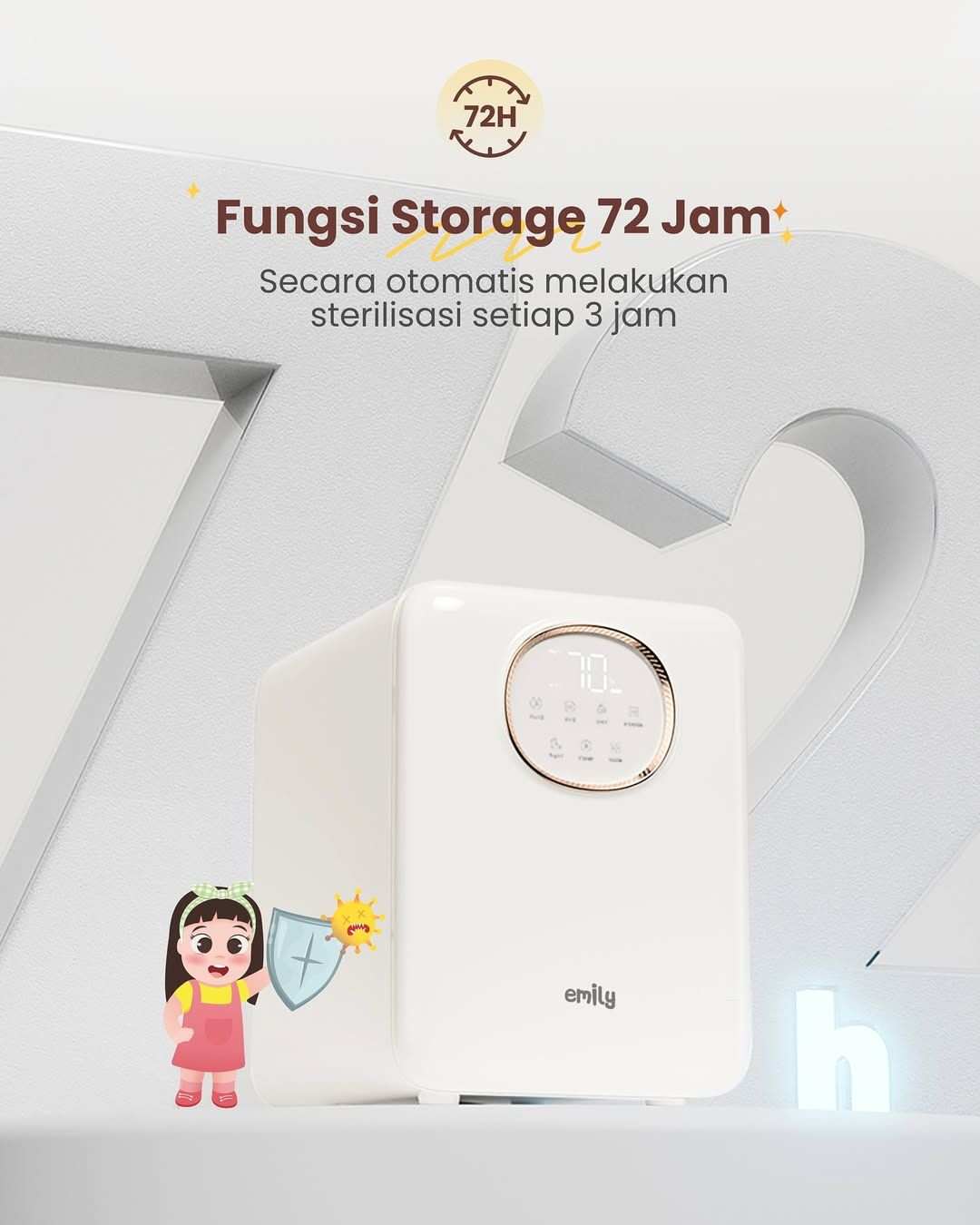 Fungsi Storage pada UV Sterilizer & Dryer 20L memiki fungsi Storage hingga 72 jam.